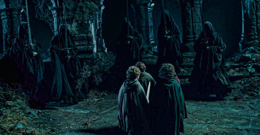Le Monde des Ombres reste invisible pour les mortels, sauf lorsqu’ils portent l’Anneau Unique. En revêtant l’Anneau, Frodo entrevoit cette dimension cachée et décrit les Nazgûl sous leur véritable forme.